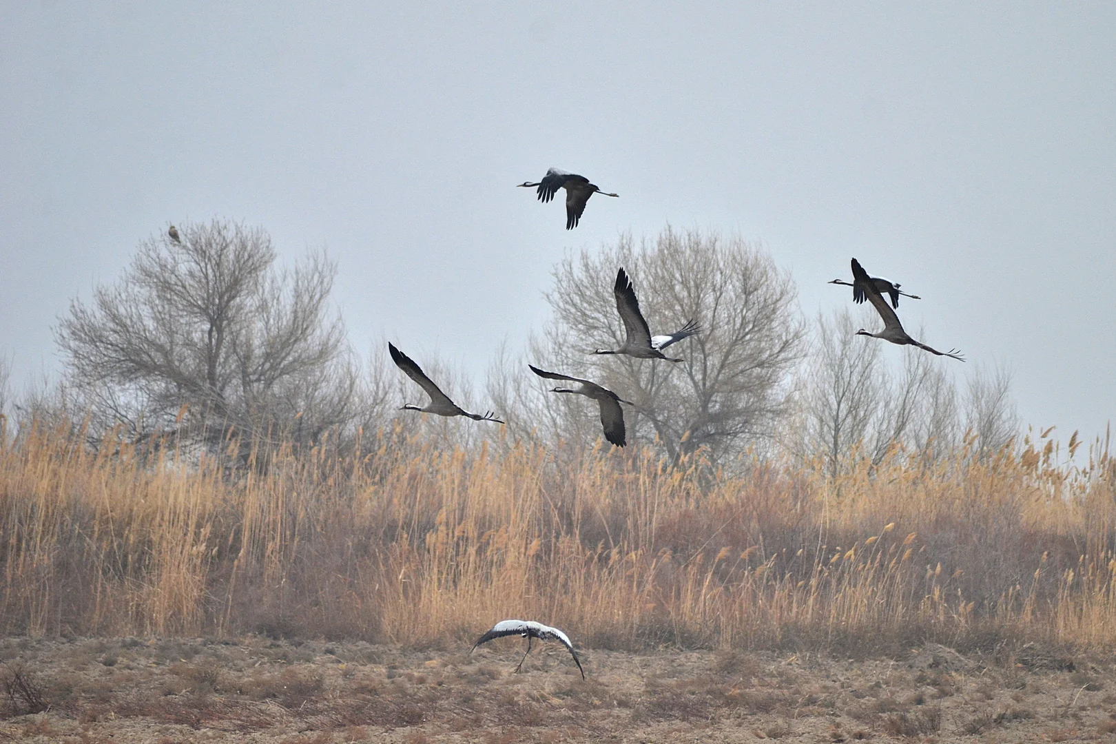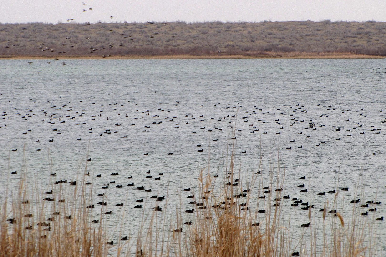 Çäkli goraghananyň çäginde guşlaryň 97 görnüşi gyşlaýar. Olaryň 46 görnüşi höwürtgeleýän guşlardyr. Bu ýerde gyşlaýan, suwda ýüzýän we suwuň töwereginde ýaşaýan guşlaryň görnüşleri we olaryň sany her ýyl üýtgäp durýar. Kä ýyllarda guşlaryň umumy sany 75-80 müňe ýetýär. Olaryň arasynda ördekleriň dürli görnüşi, sakarbaraklar, çarlaklar, uly jüptünler, gogurlar, gazlar köpsanlydyr.